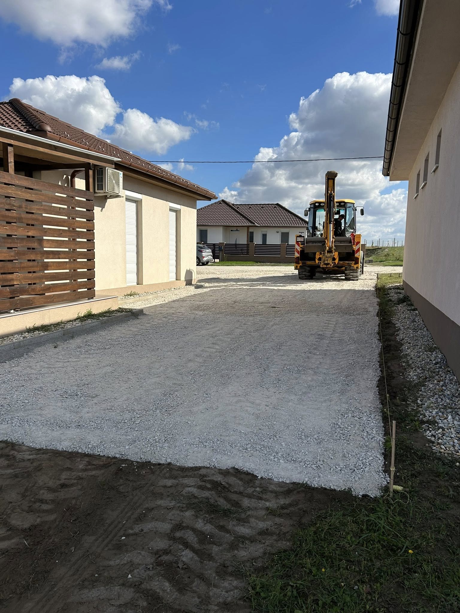 A jól kivitelezett murvás burkolat a leggyorsabb és leggazdaságosabb megoldás udvarok, kocsibeállók és telephelyek rendezésére. Saját gépparkunkkal elvégezzük a szükséges tükörkészítést (földkiemelést), a rétegrend kialakítását és a murva terítését, tömörítését.